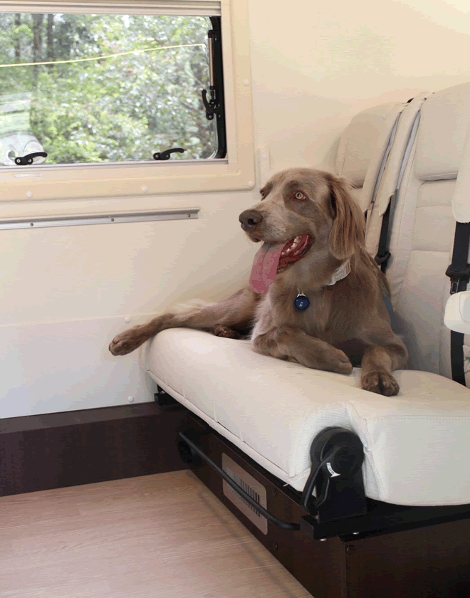 レインボーのキャンピングカーは、ペットと一緒に快適に過ごせるよう工夫されています。