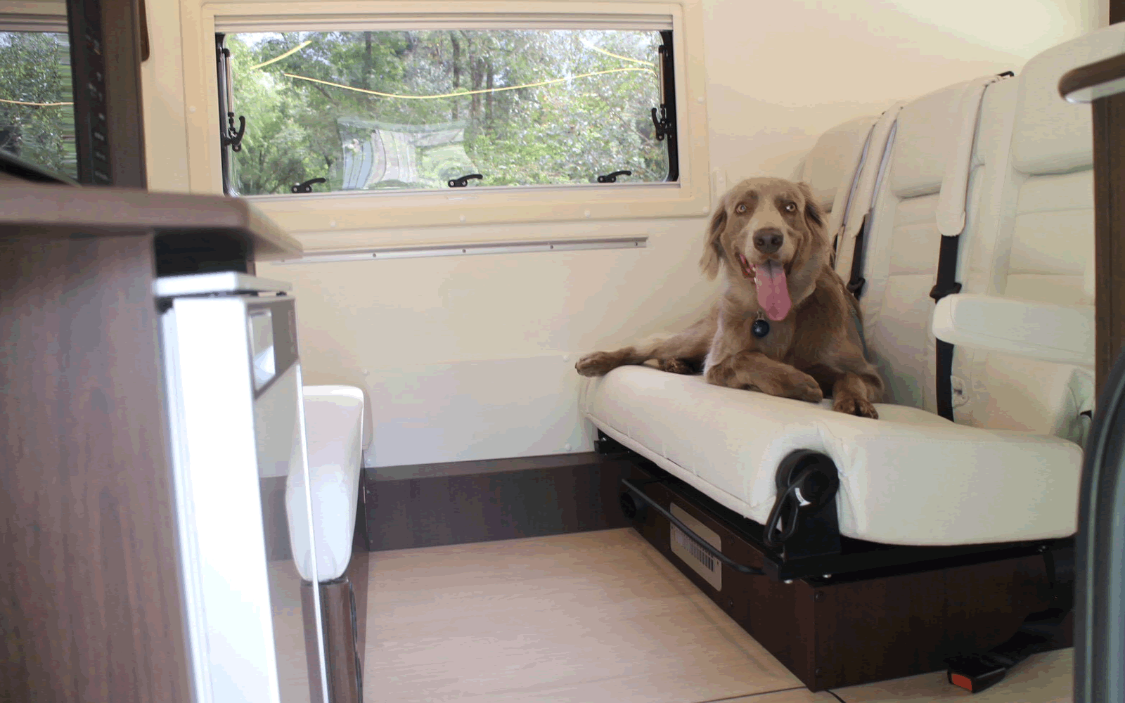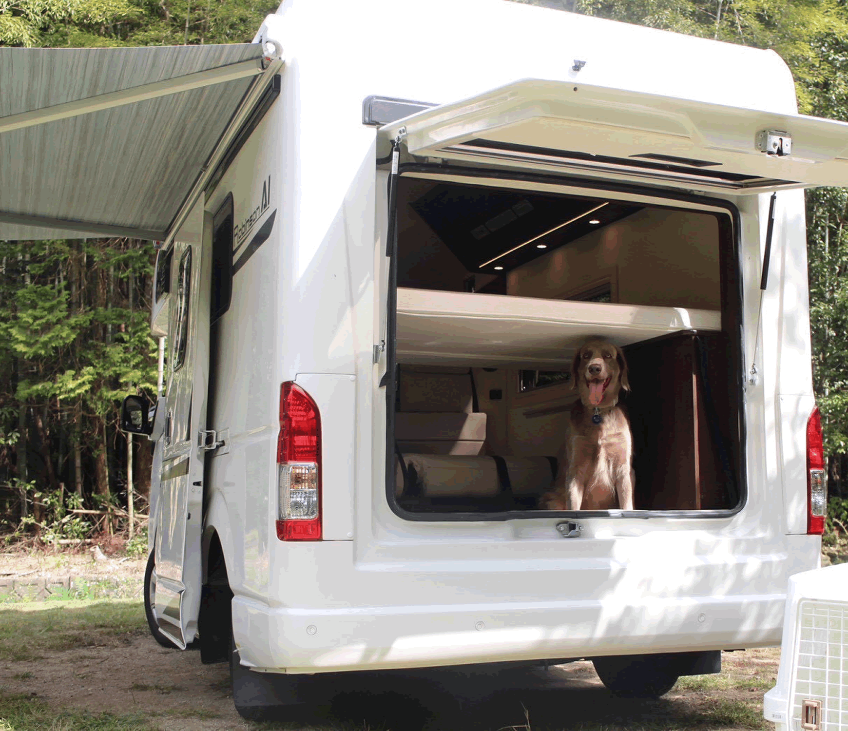 レインボーのキャンピングカーは、ペットと一緒に快適に過ごせるよう工夫されています。